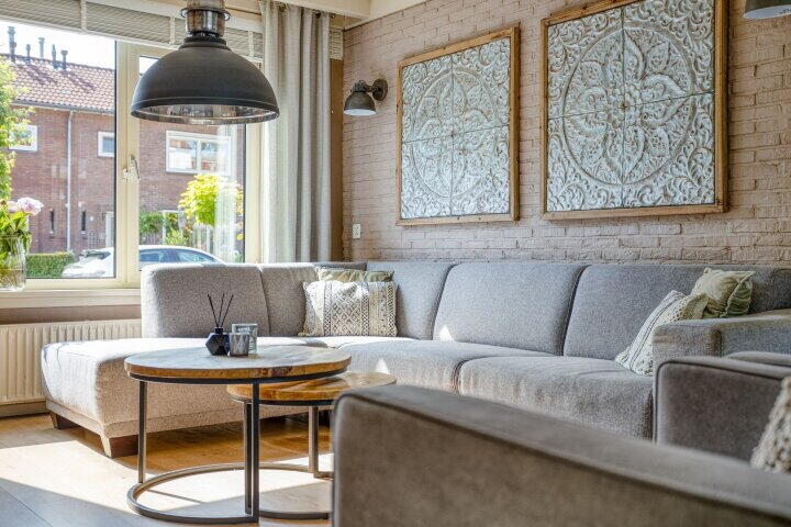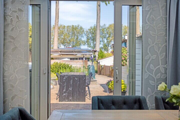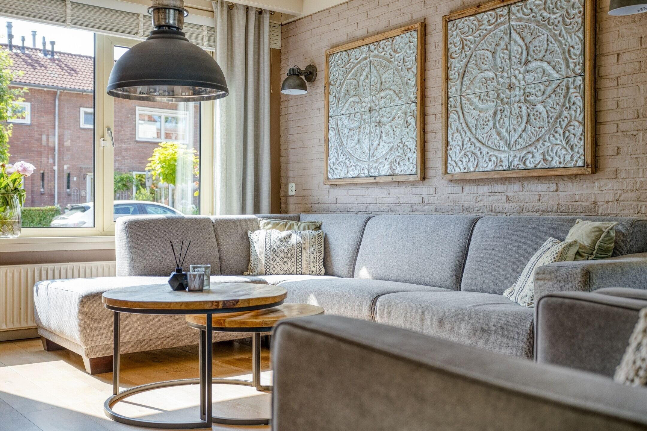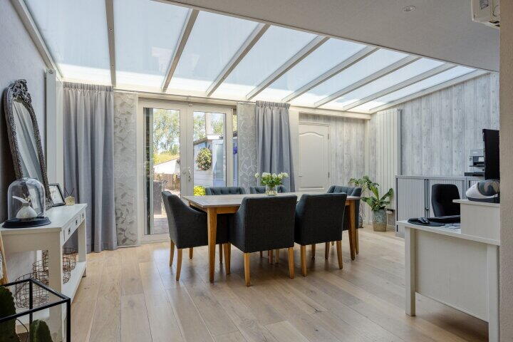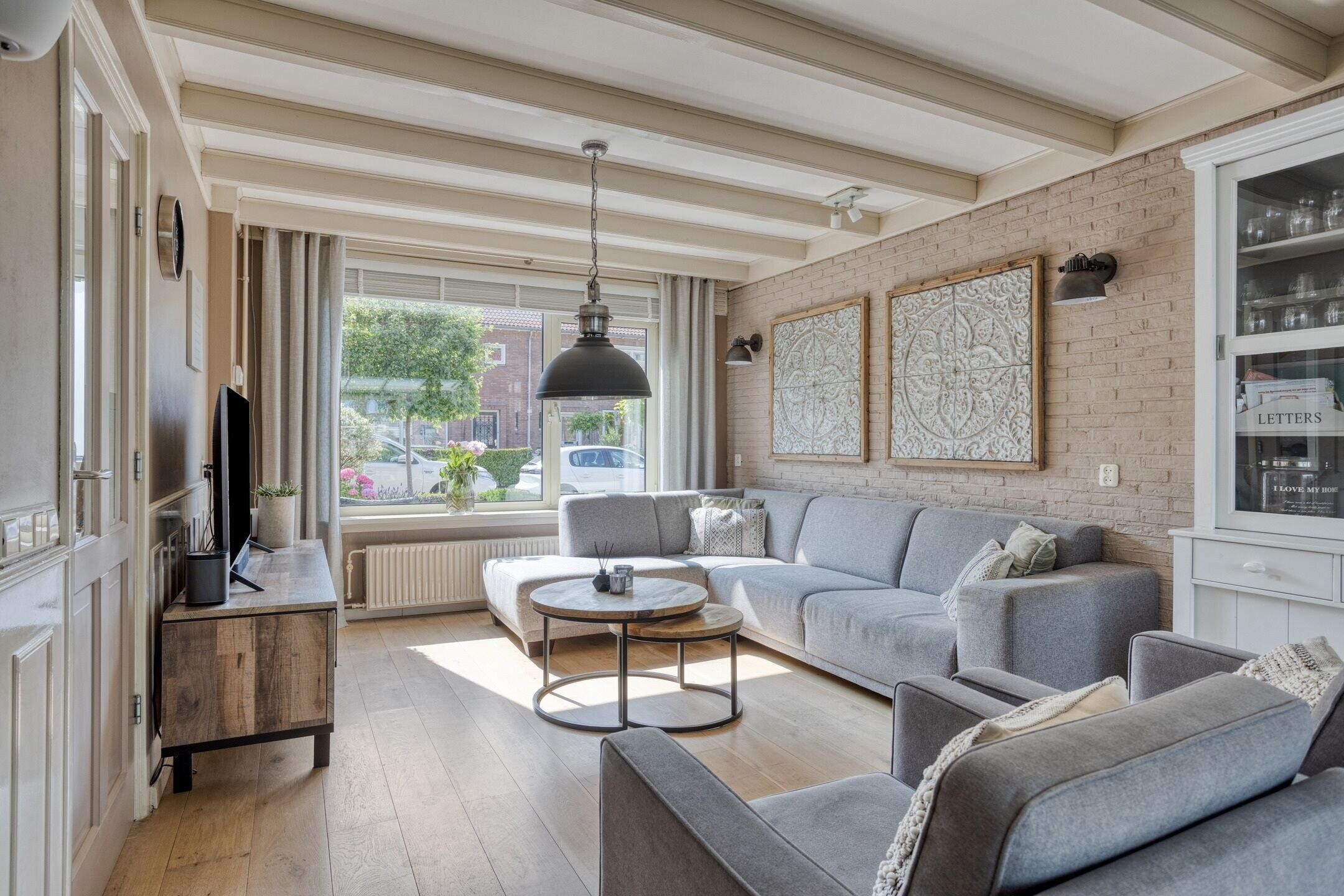 Bij binnenkomst in de woonkamer valt het gelijk op dat deze ZEER LICHT is door de daglichttoetreding door de ramen aan de voor-, achterkant en in het dak van de uitbouw.