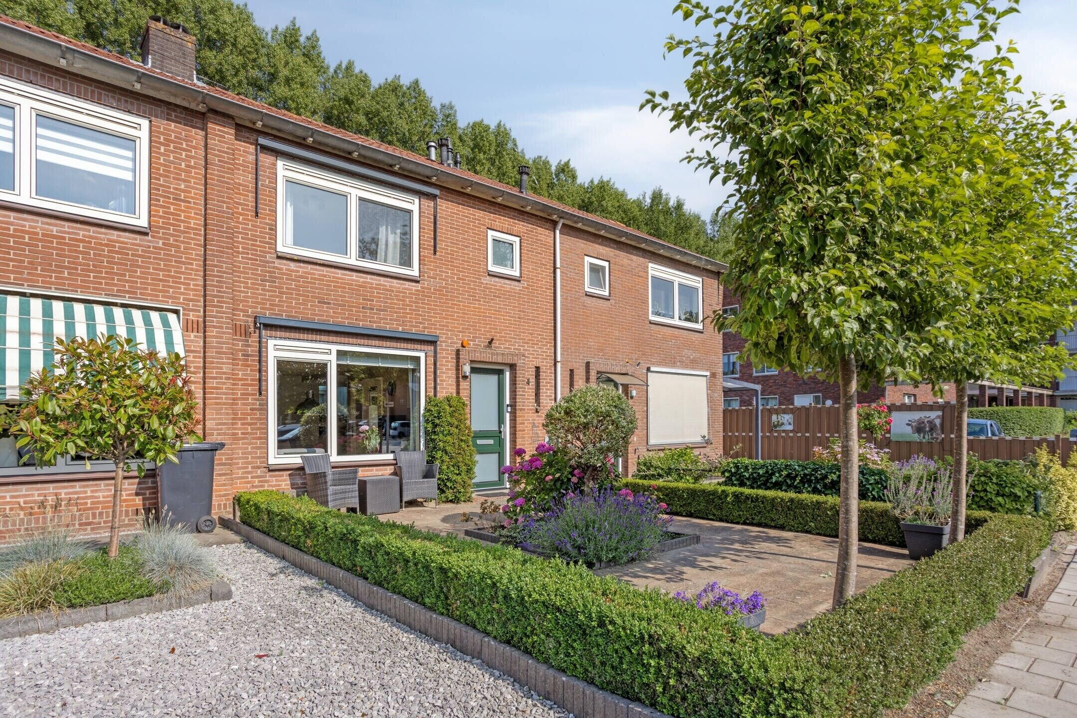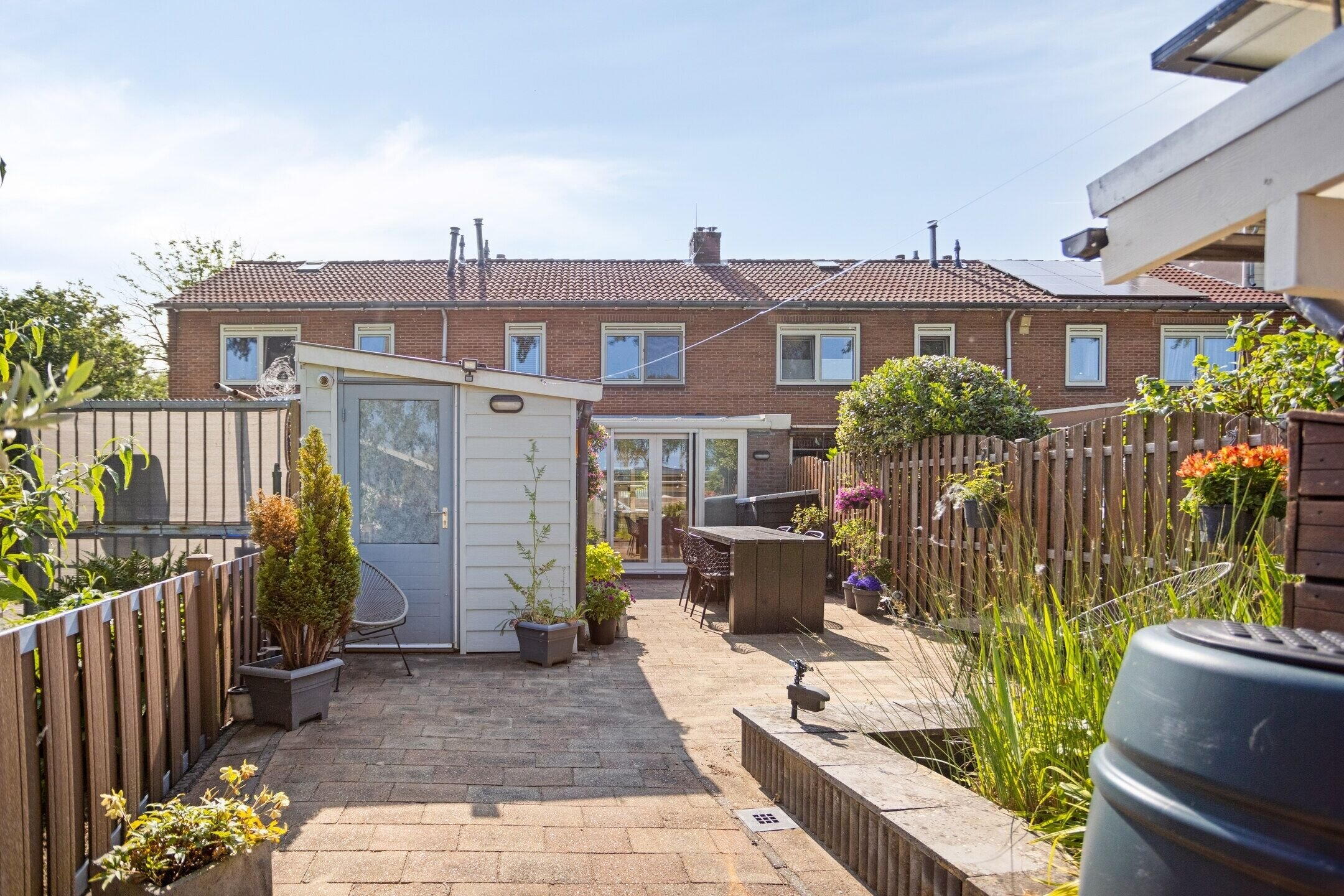 Mooie ruime diepe achtertuin en kleurrijke voortuin