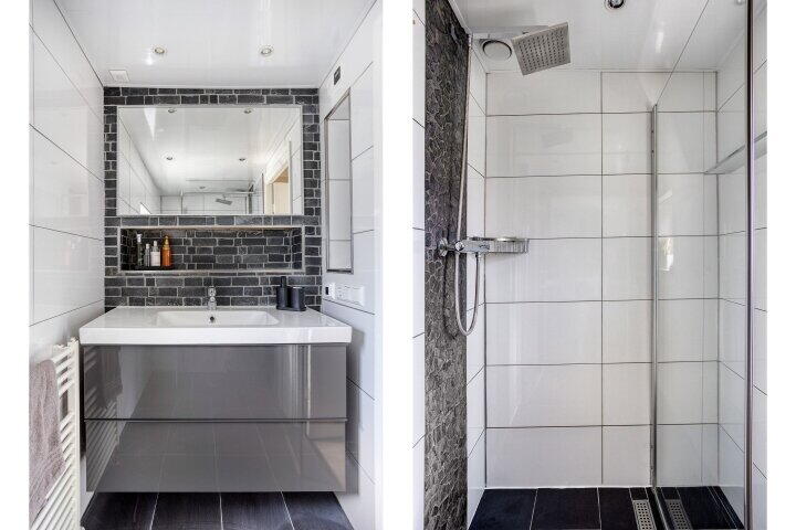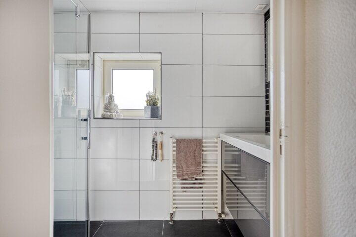Via de overloop bereikt u de 3 slaapkamers waarvan de kleinste slaapkamer wordt gebruikt als inloopkast. De fijne badkamer is voorzien van een inloop/regendouche en wastafelmeubel.